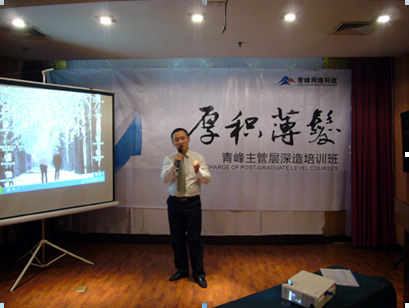 借此機會得以提高公司主管們的管理能力,能使這些處在公司的中流砥柱在青峰這個平臺可以更大的發(fā)揮潛力,所以特成立“青峰主管層深造培訓班”,讓我們未來